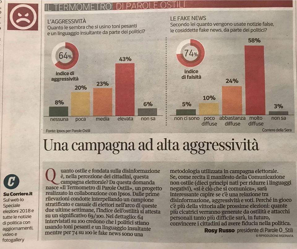 Viene inaugurata oggi la rubrica “Il Termometro di Parole Ostili”, appuntamenti settimanali (al sabato) che “misureranno le temperatura” dell’ostilità percepita dagli elettori in questa campagna elettorale.
